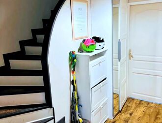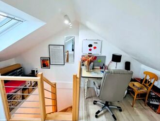 Combles entièrement aménagés en 2019 en grande chambre avec coin bureau, salle d’eau avec lavabo et rangements