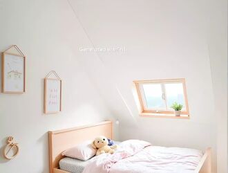 Deux chambres dont une avec mezzanine et une salle de douches avec wc.