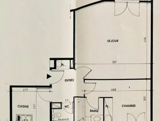 Lumineux et en parfait état, cet appartement vous offre au troisième étage une entrée, un séjour avec une cuisine équipée de 32.40 m², une chambre avec un escalier d'accès donnant sur la salle de bains et wc.