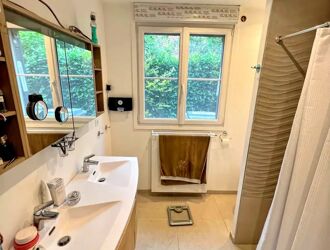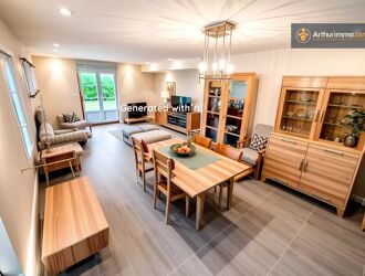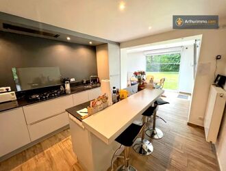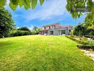 Située sur un terrain clos, verdoyant et arboré de 800 m², cette belle propriété lumineuse de 7 pièces (181 m² habitables) offre de beaux volumes dans un cadre de vie agréable. Les pièces de réception et la cuisine dinatoire sont spacieuses et s’ouvrent sur une grande terrasse couverte, idéale pour profiter de l’extérieur avec un espace barbecue.