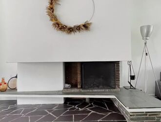 - Au premier étage vous serez séduit par ce beau séjour/bureau et cuisine ouverte ( environ 55m² ) et sa cheminée fonctionnelle très joliment rénovée, une terrasse suspendue donnant sur son jardin.