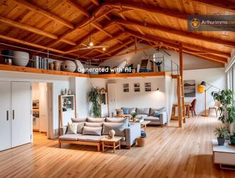 Le loft bénéficie d’une hauteur sous plafond impressionnante de 6 mètres, de double vitrage, d’un poêle à bois et de 7 VMC pour un confort optimal. Il dispose également d’un grand garage pour deux voitures.